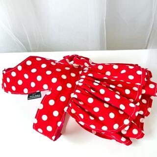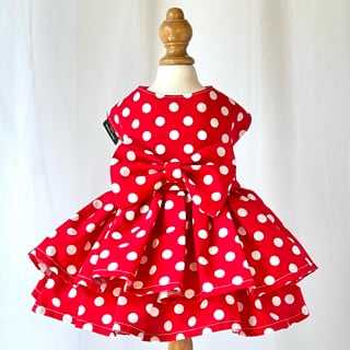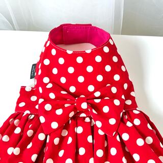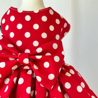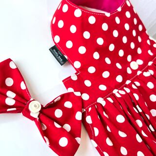 華やかな水玉模様の真っ赤なギャザードレス。